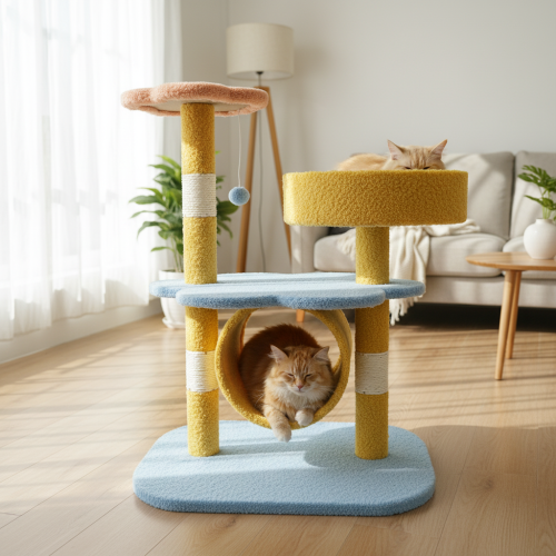 ARBOL PARA GATOS BEEPAW AMARILLO CON PLATAFORMA 49*40*65 CM. MOD12