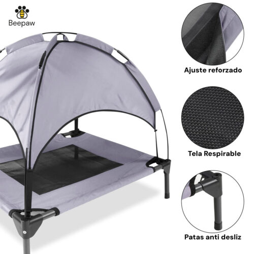 - Versatilidad: El dosel es extraíble, adaptándose a las necesidades de tu mascota en cualquier clima.