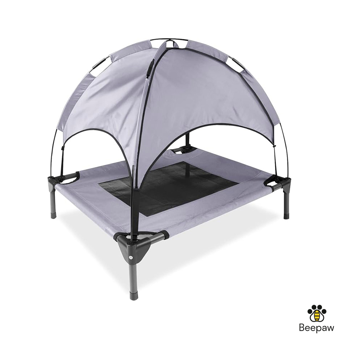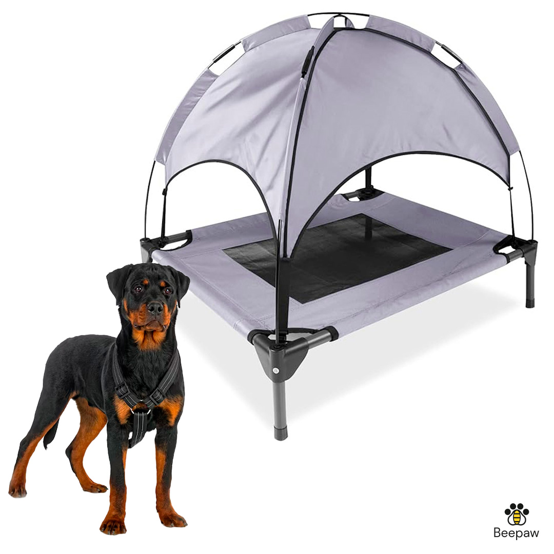 - Protección total: El dosel desmontable brinda sombra y protege a tu mascota del sol directo y la lluvia, ideal para patios, balcones, camping o jardín.