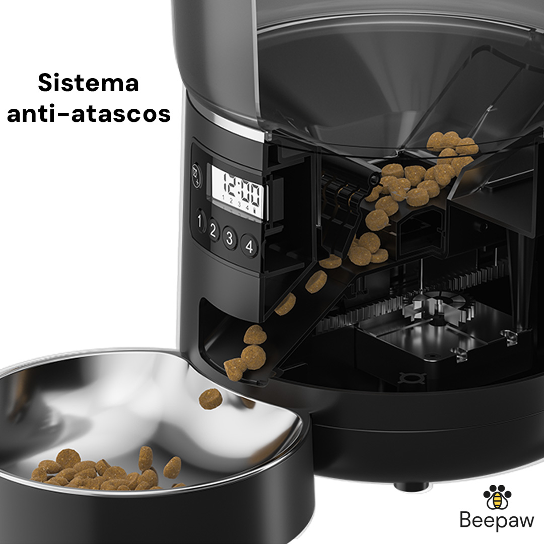- Gran capacidad: con 4 litros de almacenamiento (aprox. 1,4 kg de alimento), es ideal para que tu mascota esté bien alimentada incluso si tienes que ausentarte por trabajo o viajes cortos.