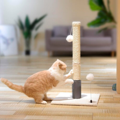 Diversión asegurada: incluye una bola de felpa y un palo de juguete que atraen la atención de tu gato, estimulando el juego y el ejercicio diario. Su elasticidad es perfecta para gatos grandes y pequeños, ofreciendo el espacio ideal para saltar, rascar y jugar.