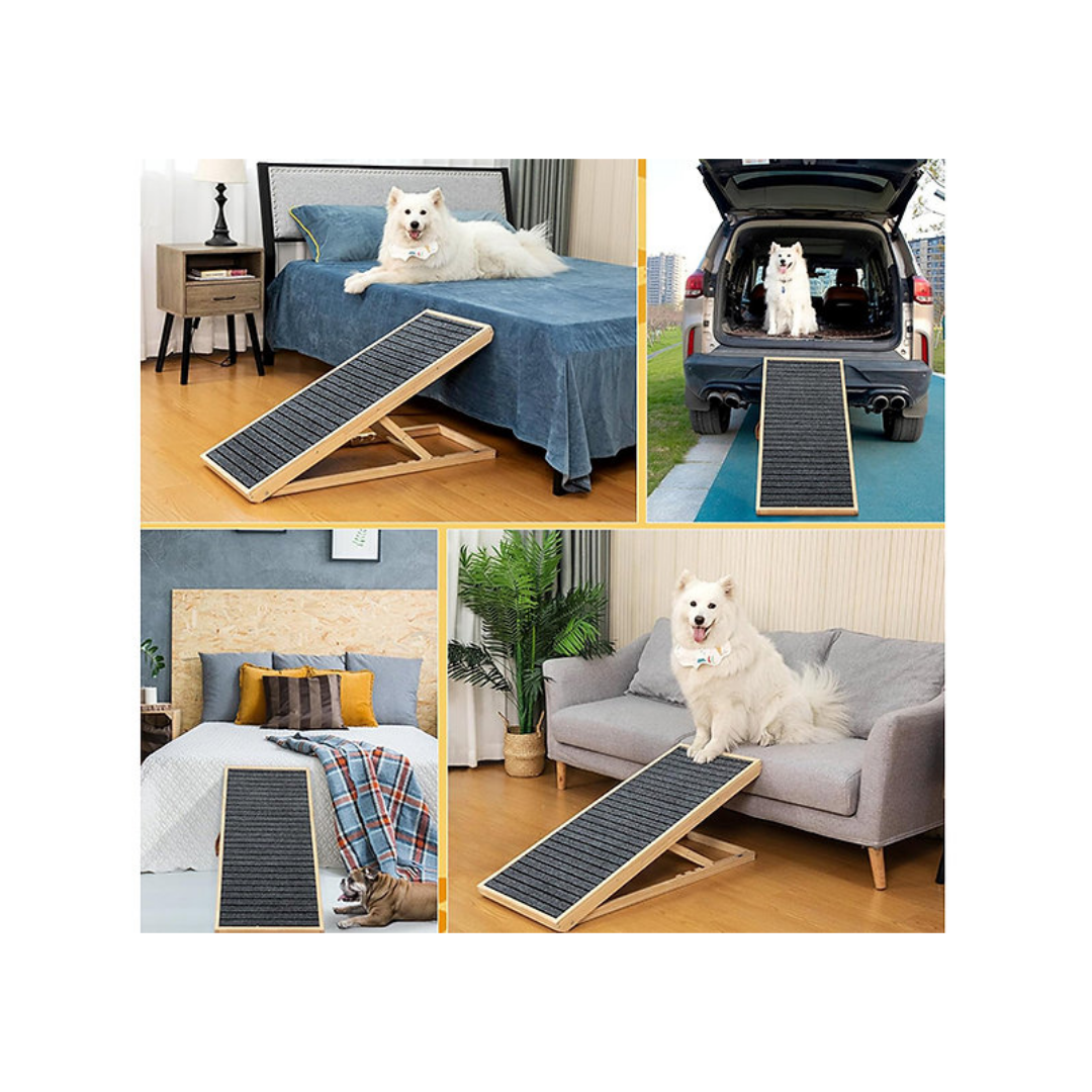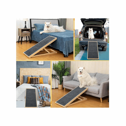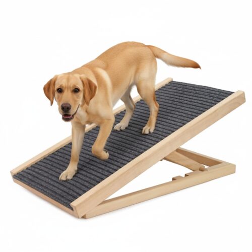 Esta rampa de madera es la solución perfecta para las mascotas que necesitan ayuda para llegar a su lugar favorito. El diseño con altura regulable permite que se adapte fácilmente a la altura de un sofá o cama.